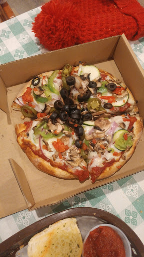 The pizza had a ton of toppings. Thats about where the good ends. The door was broken so every time someone came in or out the door stay open. (It was freezing an pouring outside). The employees did nothing to shut it so my husband had to get up twice when i couldnt take the cold. They also wouldnt change the one tv thay was on to the football game instead made us wat h womens basketball. Two peopke asked for football btw. The pizza was kinda under cooked, but had a ok crisp to the crust. Probably wouldnt return. I can find a better place that puts just as many topping.