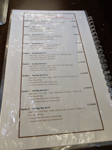 BEST PLACE TO GET KBBQ in the southbay! I dont think any other place can compare because its priced right, you get huge portions, service is great, and the food is delicious! The wait for this place is usually pretty long, and in previous visits I was always too lazy to wait in the long line. I came here on a Friday night with my boyfriend and we waited about 40 minutes. You have to push and shove your way to the counter the moment you walk into the restaurant just so you can get your name down on the waitlist since there is usually a crowd of people just standing around and waiting. Once we were in our seats, we were quickly helped by one of the servers and ordered. Their service was great throughout the night, we really didnt have to ask for much. All the servers in the restaurant kind of rotate to help you so you dont have to flag your own server down just to get something. You also get get a free seafood pancake if you check in on yelp, so dont forget! :D My boyfriend and I ordered the small family which is 1.5 serving of two different kinds of meat (your choice), white rice or kimchee fried rice, egg soup, bean stew or kimchee soup, salad, and all the banchan youll ever want (: The Small Family ($33): Its really the perfect size if youre in a group of two. A LOT OF FOOD! we had more than enough leftovers for lunch the next day. You get to choose two types of meat, for one meat you get 1 full serving and the other you get half serving thats why you get 1.5 total serving of meat and you HAVE to specify which meat you want as the full serving or half serving because some meats will immediately get served as the 1 serving size if you dont specify. We got the bulgogi (1 serving) and the beef slices (0.5 serving). I wish we had known earlier about the specification because we would rather have the beef slices as the 1 full serving. But they were both really good! The bulgogi came already cooked on a sizzling plate and the beef slices were cooked right on the spot. I thought the bulgogi was a little sweet but it had a lot of flavor. Your table is set up so that you have a portable stove next to you. The servers will stop by every now and then to help you cook your meat (: The 4 sauces they give you went really well with the beef slices! They also give you a mighty large portion of meat. Plus they give you large lettuce leaves and rice paper to eat with your beef, yum! We got the kimchee fried rice too which was cooked right on your stove and that was delicious (: The other side dishes like the egg soup and the bean stew soup were also great as well. Their banchan selection was awesome! I loved every single dish that came. Overall it was sooooo much good food! and at the end you get an awesome cold yogurt drink! :D Definitely coming back because its too good not to!