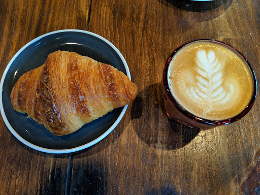 Good coffee, and really friendly young staff. The owner is ridiculously friendly, and this undoubtedly has percolated (pun intended) down to the staff he hired. A pleasure to walk in and be greeted by people who care about what they are doing. Attractive, somewhat austere shop. Clean, modern. Since they are popular, the one espresso machine cannot keep up with demand, so a cappuccino can easily take 10 minutes or more to arrive to. The espresso extraction varies by barista, but is always good, if not excellent every time. The coffee is good quality, and they seem to be settling on very nice roasts from quality vendors. Nice people, nice shop.