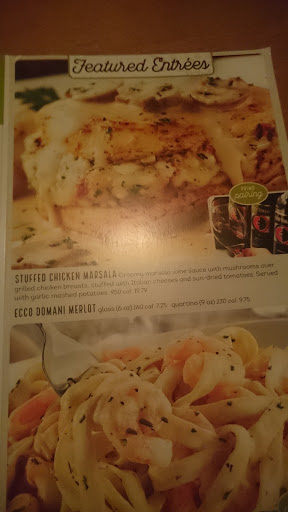 I like this spot cause theres plenty of parking and try get you seated quickly. The food is good and they serve wine here too. I really like the salad and bread at Olive Garden because theyre fresh and endless. The only thing Im not crazy about is the lack of a healthy alternative menu so you have to read the menu and make your choice.