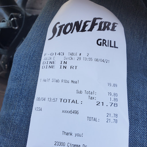 Stonefire Grill has a very affordable price for what you are getting. $64.00 for a meal that serves 5? (Half Slab of Tri-Tip and full slab of Baby Back Ribs and a Salad w/ Mashed Potatos) Wow! The Tri-Tip is perfectly juicy and soft and the Baby Back Ribs are nice and cooked. The Breadsticks are good but I have seen better. The only other complaint I have is ordering before getting seated. Usually, I go here on holidays and the lines can extend out to the parking lot so it would be best if you could order once you get seated. Sanitation: 4.5 Friendliness: 3 (There is no waiter/waitress) Quality: 4.5 Affordability: 5