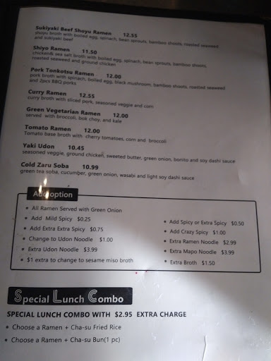 This is the "best" ramen joint in SCV. Such a shame its really weak. If you want good ramen in this valley, order it at Kabuki Restaurant. The tastiest ramen they have here is curry. But generally, their broth is really weak and the noodles arent better than Top Ramen you cook 3 minutes at home.