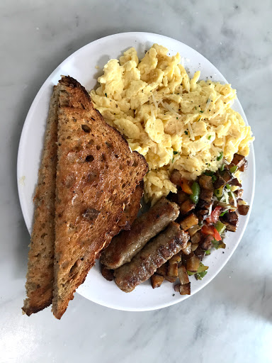A well maintained coffee shop with an industrial/high ceiling look to it. I believe they bake everything in house. They have fresh made breakfast items (scrambles, egg on toast etc) with a touch above the standard fare. The coffee is good too. I would have normally given 4 stars but was impressed with how effectively the manager/owner handled a "change order" situation that caused a bit of confusion between me and one of the workers. She stepped in, listened to what I had to say and without me asking went above and beyond to get things sorted. This is how customer service should be and deserves a five star.