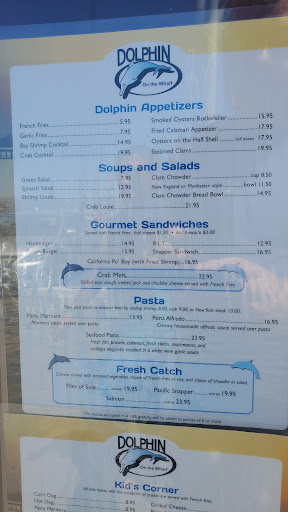 The Dolphin always comes through with good food great service and delightful scenery. Seen as a walk up restaurant, for which it is highly praised, many dont realize it has fine cuisine as well. I had the salmon last night and it was superior, no place on the Wharff could have done better. The Dolphin looks tiny but it is larger than you think. The clam chowder is the finest on the Wharff, bar none. The Dolphin is a place worth finding. Many have great names but if you want great food the Dolphin is it!