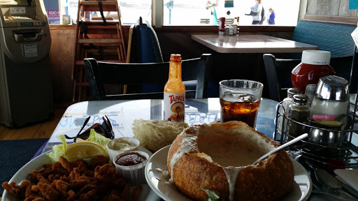 I will never eat here again. The food is all deep fried and nothing is fresh. On my way to use the restroom I say the cooks open a large can of calm chowder so your paying a lot for something out of a can. Almost everything on the menu is cooked in oil, so I would say save your money and go get a burger and fries since its a third of the price and tastes so much better. The only thing going for them is the view being at the end of the pier, however the rating is based on food alone.