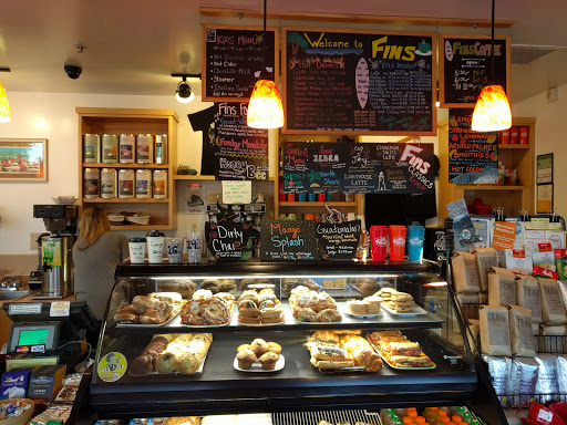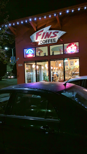 Let me start out with: Try the cherry bomb! Fins is a convenient walk from many hotels, and for this Im thankful. I would swear that there were envious looks at my hotels free breakfast while Im drinking my Fins and others are dealing with the grey water the hotel calls coffee. The place has room to sit and relax, a parking lot, and street parking if you need it. The staff are friendly, and while not the quickest Ive dealt with, good at getting through the customers in line. There is a good selection of pastries in the display case, but I didnt try them or any of their other savory options. I had three cappuccinos and a traditional black coffee from there. The coffee was good, not quite as strong as I like it but much better than any of the chain shops (and lets not even try to compare the hotel stuff to it). The capps differed depending on who was working the machine. I had a great and two good cups from them. What really got me was the cherry bomb. One of the folks from a meeting being hosed at UCSC spoke to a bunch of us about it. A mocha with cayenne pepper and some cherry flavoring. Ive grown away from mochas, the sweet just doesnt do it for me anymore - but this drink is an exception. The warmth of the cayenne comes to the front and heightens the total flavor of the coffee. It was so good I almost went out of my way to go back for another to drink on my drive home. I recommend you check out Fins (and the cherry bomb) if you are in the neighborhood. I know Ill be going again.