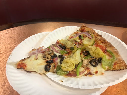 Great place. Very comfortable, casual vibe. We had a slice of cheese, slice of mushroom, slice of hawaiin, slice of pesto. They were all delicious. Service was ok, though the young man serving us seemed inconvenienced by the customers. The best deal by far is a slice of pizza, served in a frisbee, and Pizza My Heart t-shirt for $6.
