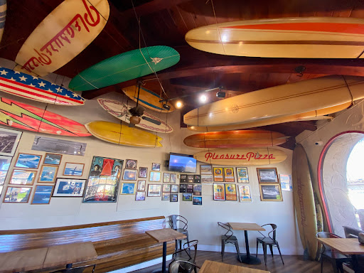 Good pizza, they sell by the slice. If you want it you have to buy beer at the grocery store next door. Sweet collections of vintage photos and boards. We surfed most of the day and my wife found the girls working there were not so hospitable. We have eaten there a few times and those were 5 star experiences.