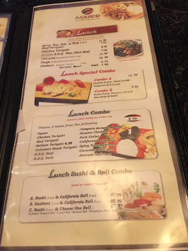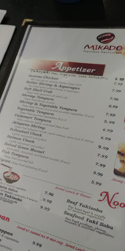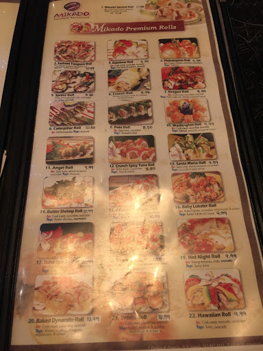 This was ok, not great, not bad, just ok. The sushi has tons of rice added. I have been to other sushi restaurants in Utah, and the sushi is well balanced, not too much rice, and enough fish to make it tasty. The sushi in Mikado just has way too much rice, like they are trying to fill their customers up with rice and save their fish. I had to cut off some rice, to taste the scarce filling. They seem to have too much crab filling, its in almost every single roll. There are other types of fish out there, there does not seem to have much of variety as far as NOT using crab meat. I was hoping to see sushi rolls rolled with cucumber, but I did not see ANY on the menu. I ordered a Roll with Philadelphia cheese, the roll hardly had any. I have eaten delicious rolls with chunky bits of smoked salmon in the past, the salmon here is crumbled. They spicy tuna is good, but like I said the meat is crumbled, there is not chewiness n the bite, no texture to the fish, which makes it disappointing. The tempura rolls are good, I will give them that. I came here on my birthday, hoping to enjoy, it was ok. I will go elsewhere for more sophisticated and creative rolls.