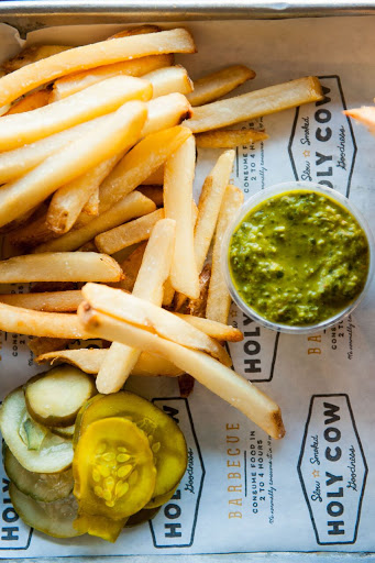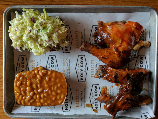 Holy Cow BBQ is a very cool neighborhood spot to grab BBQ. We dont have enough BBQ in LA and its refreshing to have it in a refined and modern atmosphere. Its clean, edgy and the food is really good! My favorite dish there is the tri-tip with some of their smoky BBQ sauce. Will definitely be making this my local spot with friends.
