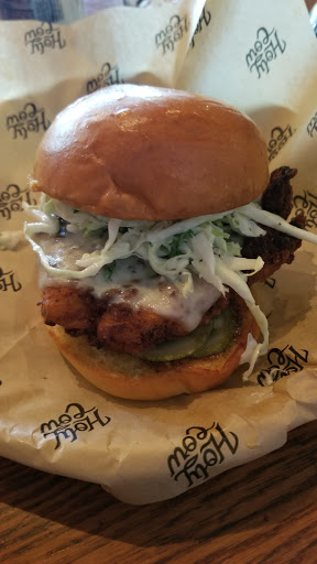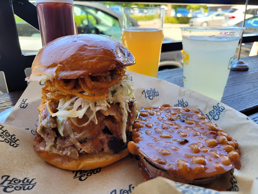 LOVE THIS PLACE! Growing up near Brentwood I had always hoped for a solid BBQ place to open up - HolyCow is a godsend. My favorite is the BBQ Pulled Chicken Sandwich, but the ribs are incredible too. You get to choose from their home made sauces which bring out the smoky flavor. We started using their delivery service at work too, home run, highly recommended!