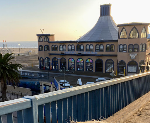 Tried their chocolate egg cream (never had it before) but my east coast friends say it reminds them of their childhood. It tasted like nesquik, soda water and cream. I asked for a tap water and they gave me a little dixie cup worth- I laughed. There is a carousel in the middle of the building and the place smells. They definitely up-charge because they are on the Santa Monica pier. We walked outside and stood in their gazebo on the pier and watching volleyball players beneath us.