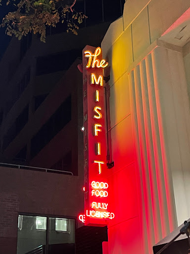 Summary: Great food, attentive service, slightly pricey but not unreasonably, cool atmosphere, good drink selection, happy hour, and fun times. Nothing that we didnt like. Parking on the street or at a nearby parking structure. Bathrooms are single occupancy, so be prepared to wait in line to...you know... My in-laws were in town for Thanksgiving and decided to meet me after work in Santa Monica. We toured around and enjoyed the sunset, then it was time to find a place to dine. We made our way to The Misfit after Yelp guided us there (based on overall score and # of reviews). It was a Wednesday evening at around 5pm, so happy hour was going strong but we were immediately seated in a booth upon walking in. The decor inside is dark, and somewhat loud due to the bar-atmosphere, but well executed in an old-timey, book-room sort of way. Dark woods, stacks of books behind the bar, and vintage looking pieces along the walls. Despite the old style atmosphere, when we first met our server we observed that she was taking our order on a smartphone or PDA-sized tablet at the table. Technology at its finest. We ordered some drinks to start since it was happy hour and mixed drinks were half price. My wife ordered a Bijou, which tasted like a sparkling greyhound, I ordered the white Sangria (delicious), my Father-in-law had a Manhattan, and my Mother-in-law had some other fruity mixed drink that she, too, enjoyed. We soon ordered. Here are the various things we got: Gumbo - Thick, spicy, hot, tasty. Not a traditional-style creation, but a delicious one, nonetheless. Pretty filling too. Mac n Cheese - Slightly on the oily side, but piping hot, cheesy, delicious, excellently textured pasta, etc. Awesome. Kale and Quinoa salad - Fresh, substantial, decoratively presented, and tasty (from what I heard). Mom-in-law seemed to enjoy this. Chickpea Wraps - Spicy and tasty. Filling, and healthy. Lobster Nik Niks - Nicely fried, excellent texture, a decent amount of lobster, though certainly more slider-sized than full sandwich sized. Quite good though. Green Chile Burger - A nice kick, but missing produce on top. Tasty, and pretty well prepared though. Brussels Sprouts - Nice and firm, tasty, and in large portion. Quite good. BBQ Salmon with Arugula Salad - Also filling, healthy, fresh and delicious. Ultimately, the common element in all of the food was freshness and quality. Those two elements entailed deliciousness that we all enjoyed. While not the cheapest meal around, it was still quite good and worth it.