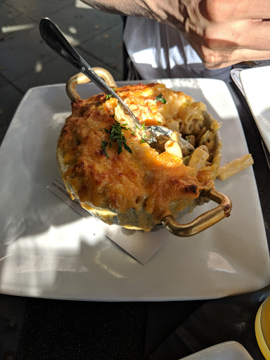 Freaking amazeballs!! How does one go wrong with a 7 day a week HH??? Thats right ladies and gents you can quaff down some delicious libations for half its price! I was lucky enough to order the ever-so-yummy white sangria and was more surprisingly appeased ^_^. At $7 a pop I had two for the price of one ($3.50 each for those of you who hate math). **I believe HH ends at 7 but dont quote me because we were in at 3ish and out before 6ish** Now not only do they have tasty drinks but they have equally scrumptious cuisine options. I got the crispy lobster nik niks , "savannah style", pancetta, heirloom tomato, Russian dipping sauce. The "nik niks" are essentially sliders (comes with 2) that are deceptively filling. The lobster was perfectly fried and the entire dish was absurdly perfect. I opted out of the pancetta but I am sure its salty flavor would have complimented the dish well. I also had the ahi burger, sushi grade tuna, carefully ground and seared rare, avocado, spicy mayo on a butter bun. YUMMMM I cant for the life of me distinguish which I preferred more because they were both amazing. Great flavor combo and the bun was amazing. BOTH great options. The fries are also tasty and you get a huge sharable mountain for only $3.50 My friend ordered the baked mac + cheese, green chile, brown rice pasta with chorizo and it was the most mind blowing cheese fest ever. Once I am off my diet I will launch my face into a big steaming pile of this dish because the aroma and visuals were just tooo tempting! Overall GREAT place to good for food or drinks. Great prices and great flavors. **Also service was MARVELOUS. I told my waitress that I would need a drink in about 7 mins and magically one appeared once I finished my first in perfect timing. She was incredibly nice and prompt! **