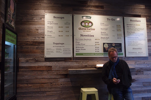 After gorging on omusubi at Sunny Blue, my friend and I saw this place on our way back to the car and decided to step in for a sweet capper to our evening. The shop has a clean, modern ambiance, but not all cutesy and/or sterile. It looks like a shop that sells a quality product, and it turns out, they really do. The fact that theyre all organic with a feel-good philosophy wasnt what drew us in, but it was nice to know about once we were captivated by their delicious ice creams! I, of course, had the chocolate peanut butter cup, and my friend had the sea salt caramel--both great. This is a place Id definitely hit up again the next time Im in the area. Looks like another Sunny Blue/Three Twins double header will be inevitable!