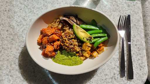Passed this place tons of time and didnt even look it up. Spacey, healthy and pricey (you pay for what you get). Their vegetarian asian dishes were unique and savory. I wasnt too fond of their drink because I was expecting it to be sweeter. Friend was happy with his kale juice while I added sugar to my cucumber refresher. Im curious what their cocktails taste like... My friend got the curry dish, which is so filling and delicious! Next time I come here I would def order that. My spaghetti squash casserole was satisfying thanks to the cheese, I wish the entree was a lil bigger. Felt like a good appetizer than an actual dinner. Service was ok. Took a while to get the check.