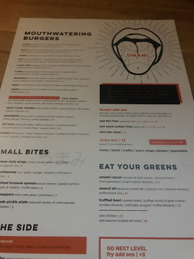 After reading the reviews I was really excited to try it. We got seated really fast and the waiter was great. We ordered truffle fries and I ordered the umami burger. To be honest everything was great but I am a die hard fan of in-n-out and was expecting umami burger to be more delicious since the price is pretty high for a burger. I wasnt a big fan of the fries - they were too thin and deep fried and a bit over salted. The umami burger had a weird sour BBQ taste to it, but I could see how people would find it delicious. It just wasnt my jam. Overall I am giving it 4 stars because I dont think its worth the price.