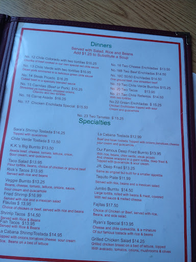 Best green enchiladas #22 (with salad, rice & beans) + best coffee around! Prices are reasonable considering you get a lot of good food. A "frequent flyer" for LA Cabana!