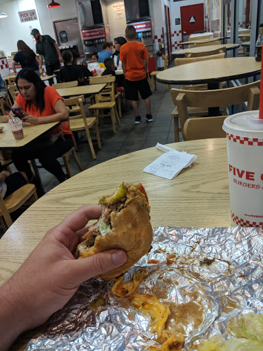 Pricey, greasy but damn worth it. I dont indulge in burgers often but when I do I choose 5 guys. They serve fancy burgers consistently. Also a great place to get a hotdog. Its rare to find a good hotdog in these parts