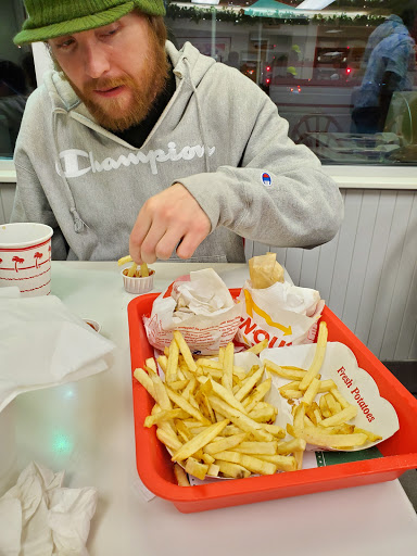 Okay burgers. Animal fries slightly overcooked. I guess you have to be proud of In-N-Out if youre from California but I fail to see what all the hype is about.