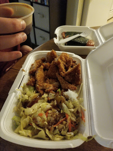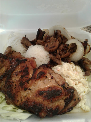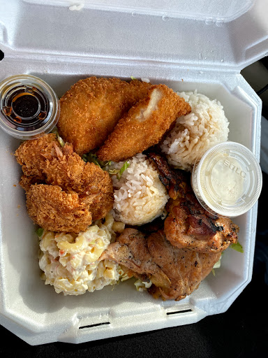 Love the food, the chicken was tender and the sauce delicious, the shrimp was OK, the MahiMahi kinda small, but the macaroni salad and rice were a picture of perfection! my favorite place...oh and the spam sushimo (I may have the name wrond), great, I took one home and saved it for breakfast......yummmm