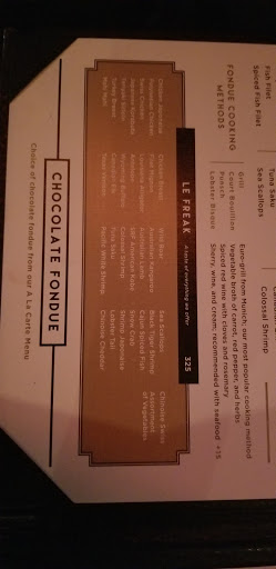 Visited La Fondue last night with a friend, we had a groupon otherwise we would not have been able to afford. We arrived early and were seated quickly. The atmosphere is very nice as so was the wait staff. The salads were wonderful. When it came time for the fondue the waiter and I were talking about the dipping options and I mentioned I have celiacs. He immediately caught onto that and explained the cheese he used was tossed with wheat to thicken and asked if it would cause me harm. I said it would. He then cleared the table and came back with an entirely new fondue pot and cheese that had been tossed in cornstarch to thicken instead. The fondue was delicious! When the dipping elements came the staff made sure the bread was on the other side of the table from me and when the meat came out they made sure all the meats that had been marinated with a component I could not eat were on a separate platter. I very much appreciated that. The entire experience was enjoyable. The only downside was my glass had a chip in it and when they cleared the plates from the salad service they failed to bring new plates out for the meats so my friend and I just brought the meat from the grill to our mouths. We dripped on the table but it was a lot of fun. We actually did not realize we were supposed to have plates until we looked at the people next to us and saw they had plates! So that was our fault also. The groupon ($155.00) did nor cover all the charges. I still had to pay a $14.00 fee. And I honestly do not feel the meal was worth, what the receipt said it was worth $405.00. But it was a fun night.