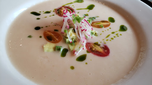 Vegetarian & vegan friendly. Service overall good though one of the hosts had a rough edge to her. It is a high end restaurant, probably for the location as well in high priced Saratoga. Good atmosphere. Food was good overall. Watch out for extra charges that they did not inform us about for splitting a pasta & for extra sauce on the rather dry but garlicky tasty arabiata. The flatbread was good. The roasted cauliflower was really good. This was more than enough food, with their complimentary bread & olive oil. There is street parking & free public parking lots.