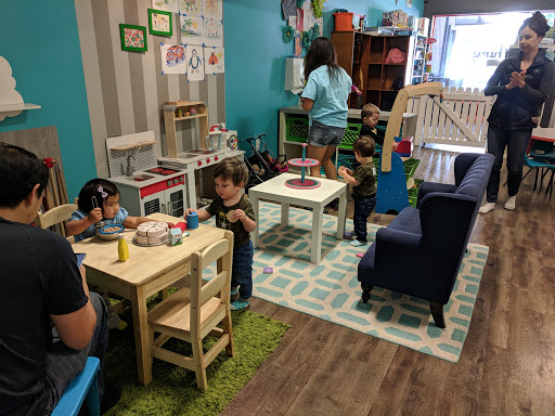 Whimsy is an adorable, fun, and clean place to bring your kid(s) to play. It has almost everything: jungle gym, play kitchens, dress up corner, crafts, music, Legos, etc. The staff helps you keep an eye on your kids, and helps you clean up after them. A cafe is attached, if you want to leave your older kids (3+ Id say) in the play area while you have lunch or coffee. Ive even seen parents "working from home" as their kid plays. My only complaint is Whimsy is pricey for someone whose kid has a midday nap and cant stay for too long.