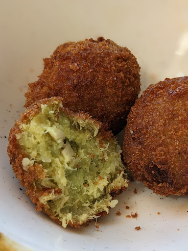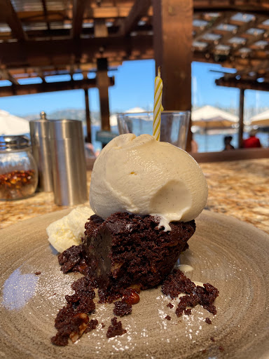 As everyone says beautiful views on the water and a bocce ball court. One of the 3 best pizza in town. Rock shrimp po boy and meatball sandwich are great except for the price. We had 1 po boy and one other dish + one glass of wine and paid $50 including tax and 20% tip. We like most of the food here but it is a little pricy so we go other places most of the time. Im sure many locals do the same unless they are "upper crust" locals and money grows on trees. Pun intended! One of the desserts is to die for but sorry I cant remember the name of it. Note to owners: Youd get a LOT MORE locals on the many quiet days if your prices were more reasonable or you had a residents discount! We only come here once a month because of the price but if we could spend a little less wed be here 5 or 6 times a month. Took one star away for over pricing on the food. Ill put it up to a solid 4 * if prices were level with most of Sausalitos good restaurants. Menu is limited. Seems to be built around the pizza with a lot of salads and sides. We sure wish they had more mains because if you dont want or cant get pizza its really hard to figure out what to eat! On the Saturday night we were there they amazingly ran out of pizza dough! How on earth do you run out of the dishes your menu is built around? Im not taking any stars away for that, we cant always be perfect can we. Just saying. And that fact tells you how great the pizza is. They do get real, real busy with non locals on weekends although I have a trick to get into busy restaurants. Do you think Im going to spill the beans right here? Well get over it because were not going to rune it for ourselves on getting into crowded places. My dinner friend has been in the food service industry for a real long time and Ive dined in 25 countries and 46 states so weve paid our dues and our dollars. This is one of the few things Im going to stay selfish about and not share.
