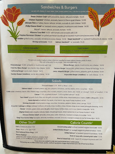 Food is okay, took a bit to get my burger. Lady at the desert counter couldnt tell me what flavor the scones were and didnt look to find out either. Waiters were very nice.