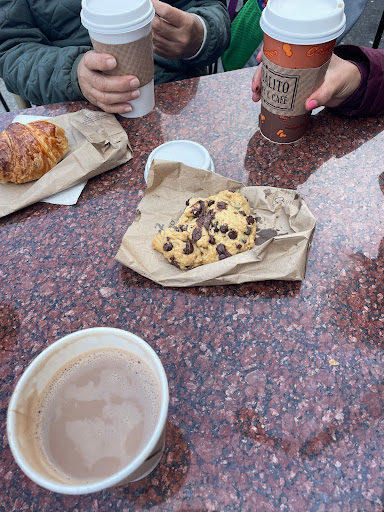Okay coffee, giant chocolate chip cookies with a ton of chips but a little dry. Other foods looked delicious and fast service at the counter. Small space and very crowded on the weekend.