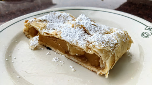 The food and service were both amazing. The owner was very attentive and the views were awesome. We stopped in on Sunday morning and would do so again in a heartbeat. The strudel and breakfast croissants were among the best Ive had.