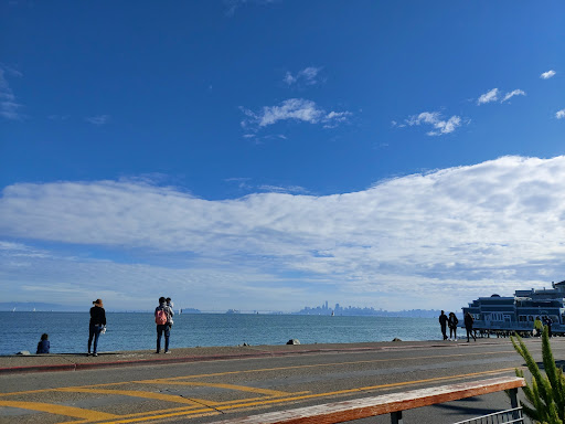 Good Mediterranean sandwiches at reasonable prices. Magnificent views of the bay and SF from the sidewalk tables.