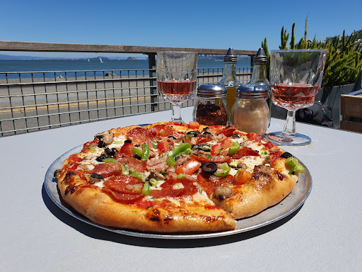 Good pizza, great view. The staff is prompt, polite, and friendly and the pizza is delicious. You can look through their giant windows at the front of the shop to see out into the bay from Sausalito. Its a shame they dont have more real estate, because with more room it could be more comfortable and perhaps allow them to expand the menu. For those reasons, and the lack of restroom, I want to give 4 stars, but only reluctantly.