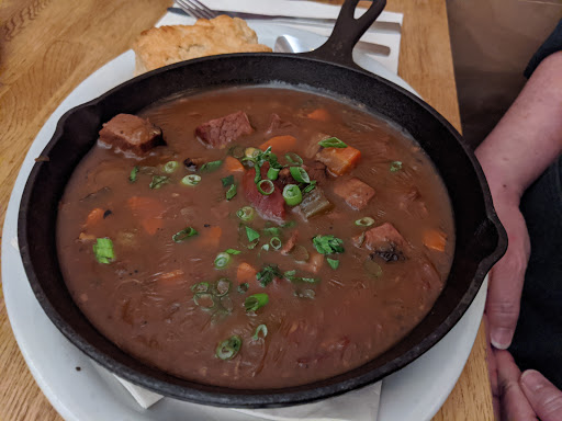 I will definitely be going back. Family friendly casual environment. Good music. I heard a track off of In Rainbows by Thom Yorke as well as Joy Division. Had the smoked ham sandwich with brie, and it was decadent as expected. The fried green tomatoes were good. Not Johnny Rebs good but good. Not too much batter and the tomatoes were thick cut. The fried green tomatoes came with no sauce, which was needed as well as salt, so I asked for Buttermilk sauce (was ok). The wild mushroom stew with blue cheese grits is phenomenal. The prices are good for what you get. Definitely worthy of repeat visits to try everything on the menu