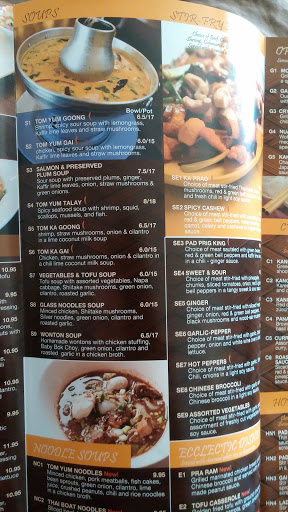 Very good Thai food in a lovely place! My favorite dishes served elegant and delicious. Service was really good and loved the total ambiance of the place. Right on Main Street, lovely decor. Food was five star.