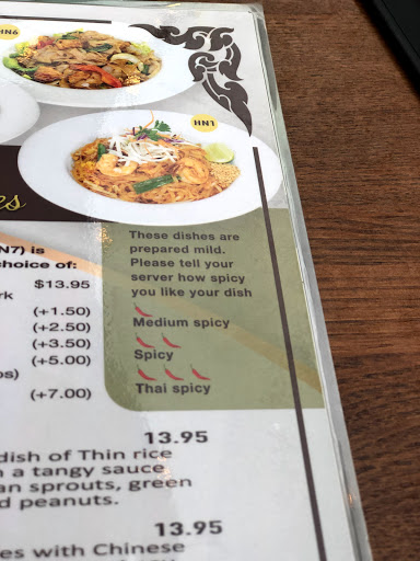 My experience of Thai restaurants is always particular because I used to live in Thailand and know o the cuisine quite well. Here I spoke to the waitress in detail to find out where the cook was from so I could order something from that region and I ordered the dish from the Northeast which is ground chicken with ground roasted rice served with fresh vegetables and lots of spicing hot Thai chili. In English its called Lop. The dish was served with sticky rice and is just as good as anything I got 30 years ago in that region of Thailand. So in short for The Expatriate from Thailand to this is extremely authentic food if you know what to order. Thats the only dish I tried and can speak on, but the overall experience is absolutely wonderful and you can hear people speaking Thai even though the owner is not Thai. Just a fantastic place with authentic fresh and delicious Thai food. Thats something thats very difficult to find in Southern California even though there are many presumably Thai restaurants.