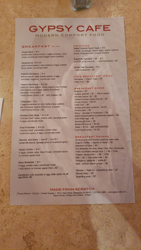 The polenta is great! I get cravings for Gypsys polenta and greens for breakfast. The service is always good. Sherry Vierra