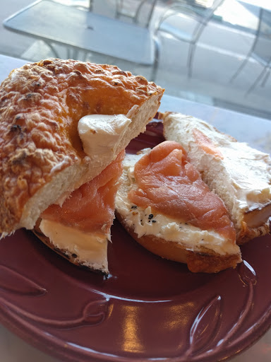 Great vibration to the setting. It feels like home and the staff is a huge part of its culture. Im feeling at ease and in a safe zone. The guy who took my order explained to me what makes the place a healthy choice to dine at and enjoy some fresh cofee. He even gave me a discount for my first time here. My day shall be eve greater now after my stop at the NY bagel cafe.
