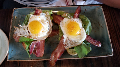 Food is okay. We tried burgers and some appetizers and they were of decent quality. Not outstanding but not bad. The service, on the other hand was pretty terrible: - Hostess did not even ask where we want to sit. She appeared somewhat preoccupied - We waited for our wine around 20 minted... 20 MINUTES for the bartender to pure two glasses! - Server got confused and brought wrong appetizer - More wine... we did not even ask - I was sitting with another glass for 15 minutes and the server paid no attention