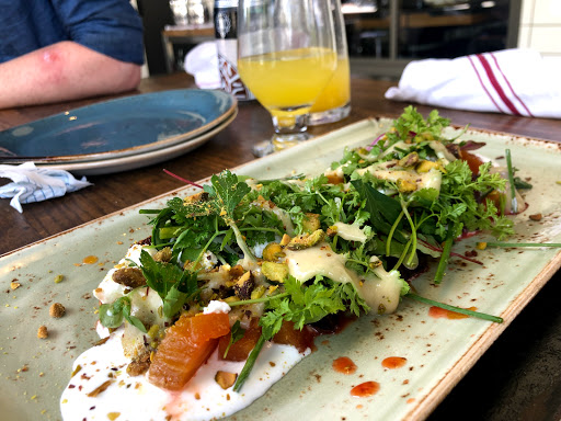 Great food! and delicious cocktails! Fun people working there and great service. Decent prices and the variety on the menu was perfect. I like heathier food and the scallop salad was great! Parking was easy. Valet only in the parking structure but the first 90 min are free with validation. Love it! Nice vibe too!