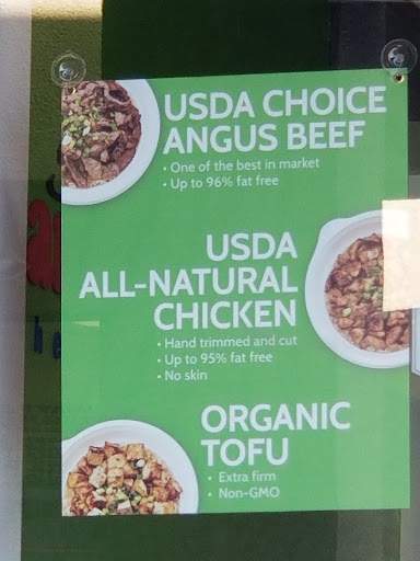 A friendly, healthy Korean "rice bowl" style counter service restaurant. Servings are generous, suprisingly good and cooked to order. The delicious vegan bowl contains charbroiled tofu, crisp veggies, brown rice, and is lightly topped with teriyaki sauce. The bowl is also available with Colby beef or skinless chicken breast meat. Fresh chives and avocado may be added. All proteins are charbroiled. Brown rice or polished (white) rice are interchangeable. Several degrees of hot sauces are offered. Wheelchair accessible including a gender neutral bathroom which requires a security code, which is printed on your cash register receipt. Easy, free parking.