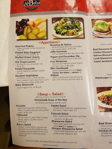 My husband and I eat here frequently and we LOVE this place. My husband I took two of our friends (who are from Saudi Arabia) to eat here on Christmas eve of all times. They re-opened the restaurant just so that we could eat. It was BEYOND nice of them. Every time we have eaten there the food has been spectacular. and the staff could not possibly be nicer. Between my husband, our friends and I we have tried almost everything on the menu. So far our favorites are chicken shawarma, kufteh chicken, the amazing house chai tea and hands down the stuffed salmon. Im from Washington state and grew up on salmon fishing boats. Believe me. I KNOW salmon. I would never order salmon in a restaurant... so I was a bit skeptical when my husband ordered it. But it was so good that I called my father and told him that finally I had found a place that does salmon better than he does. I hope my husbands job stays here a long time so I can keep enjoying this amazing food. And my friends from Saudi Arabia... well.. one of them tells me frequently how bad he gets cravings for the food at Ali Babas. He said that it was the best he had had since he left home. I HIGHLY HIGHLY recommend this restaurant! I would be here every night if our budget would allow it. ;)