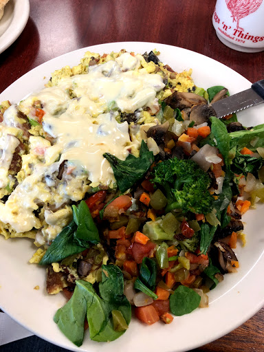Eggs and things is a very nice establishment good portions of food good quantity timely manner very professional waitresses every meal starts with Crepes very delicious its worth the wait theres always a line to get in