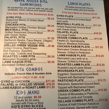 We have been coming here for lunch for over 20 years. I tried the Village plate and didnt care for the gyro. It was very greasy and had a lot of gressel in the meat.