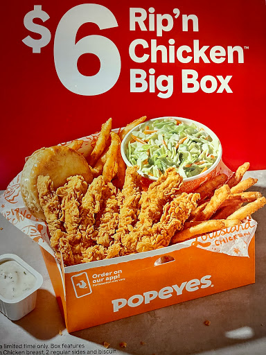 Its a clean Popeyes, my only suggestion would be to offer a wing deal. It seems wing are always sold out and are popular in this area. This Popeyes should accommodate the demand for wings!