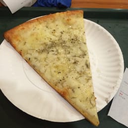 Great variety and quality pizza, NY style. Slices reheated with perfect crispy crust, friendly service