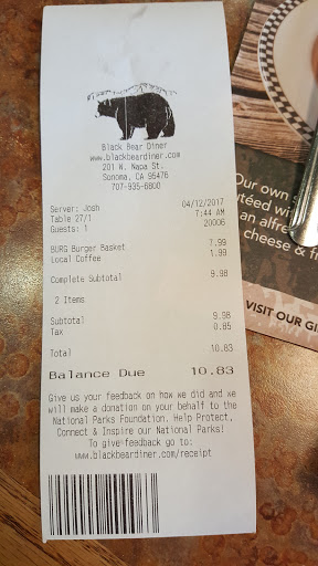 One of the best things about moving to Sonoma was finding the Black Bear diner where you can breakfast all day and almost everything else you can imagine. The staff is great, great for takeout and I always feel welcome and comfortable being alone. The reason why I wrote this was to find out the hours because I need some breakfast tonight. Try them, youll love them! And they are open on Xmas for single people like me.