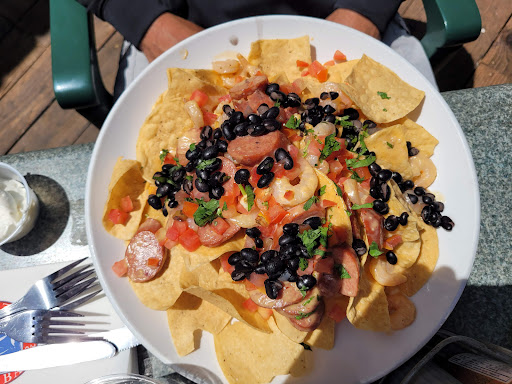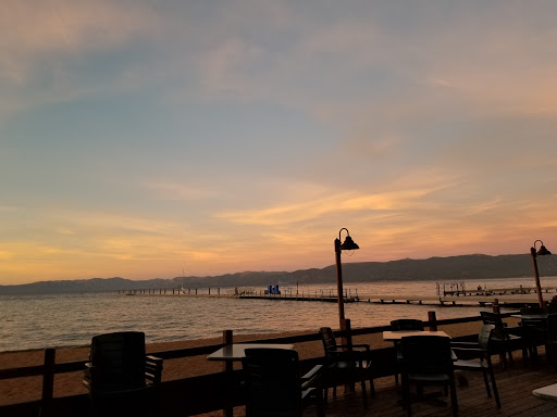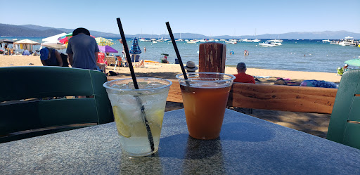 Beautiful beach and Lake view, waterfront. My husband and I toured Tahoe on our bikes and then came here for lunch, since it is on the bike path and has racks for your bike. I had the clam chowder and it was very good. My husband had an Avacado burger and it was also good. We ate in the bar so as to have a good view without the long wait for a window seat. Cute little place, great for lunch and lots to do and see around the area to walk off all the yummy food. Very cute area. Beach right in front made me wish we had a football to toss around or a kayak to jump in and paddle off in :) a lovely little spot Id like to go to again!