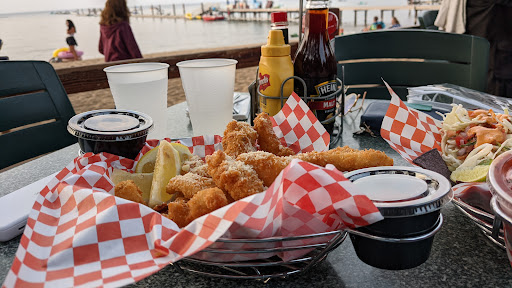 I had the fish and chips and it was either way overcooked, or they re-fried it. It was like they took some frozen cod with freezer burn and fried it in oil used to cook something else. It did not taste right at all and I felt awful after. It was listed as a favorite on the menu and that is why I chose it. The calamari was okay and I wish I had just ordered that for lunch. The location is nice because it is right on the lake (I give it one star for that and the calamari). I was not satisfied at all and I should have sent it back now that I think of it. Honestly, I would have rather had fillet o fish from McDonalds.